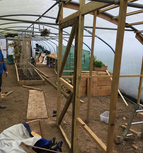 This development has involved complete construction of raised beds and potting stations which can also be used by people who are unable to bend. There is also a double skinned area for growing exotic fruits, as an income stream for The Askefield Project.